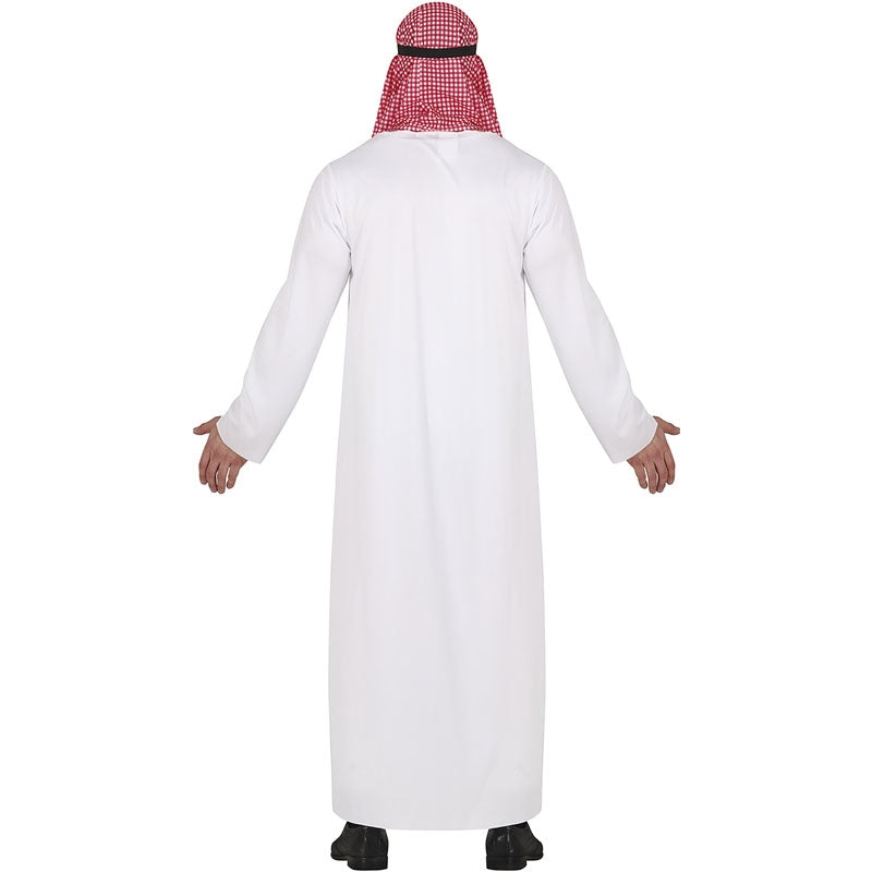 O fato inédito Xeque milionário para homens inclui: Túnica, lenço e fita para a cabeça | Este disfarce de Xeque dos Emirados Árabes para adultos está disponível em tamanho único