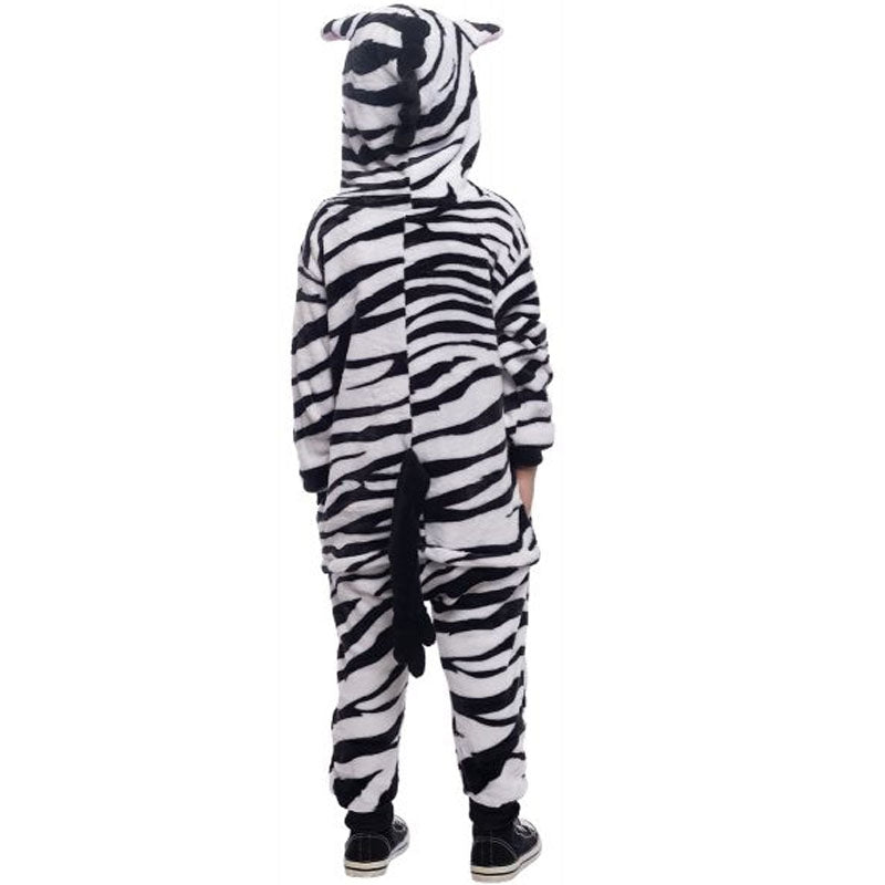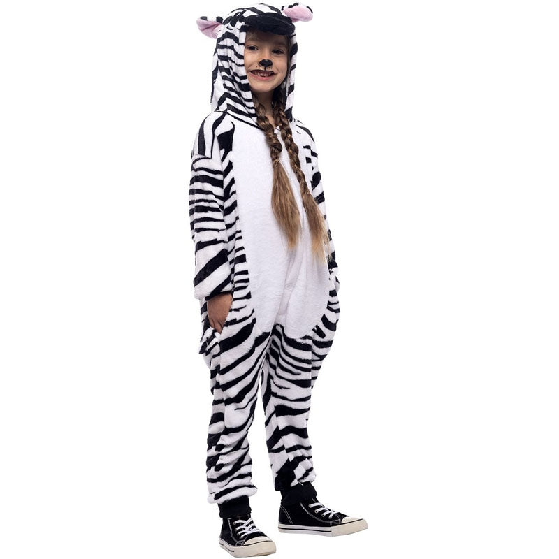 O fato inédito Zebra Arca de Noé para meninos inclui: macacão com capuz e cauda | Este disfarce de zebra às riscas pretas e brancas para crianças está disponível em 2 tamanhos diferentes