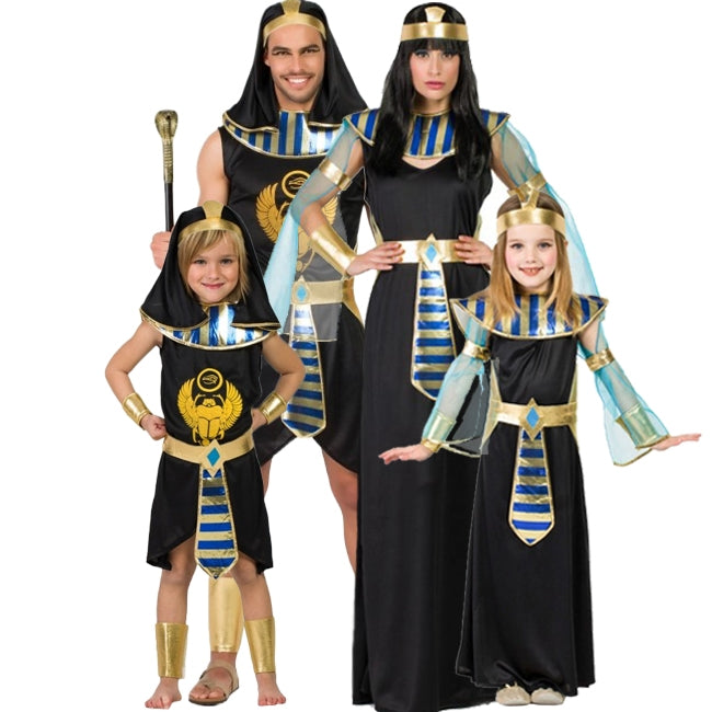 Uma ideia fantástica para disfarçar toda a família de Faraós Egípcios com desenhos a combinar para homens, mulheres, rapazes e raparigas. Pode aceder ao conteúdo de cada fato abaixo na secção "Complete o seu look", onde cada fato pertencente a este grupo é listado individualmente.