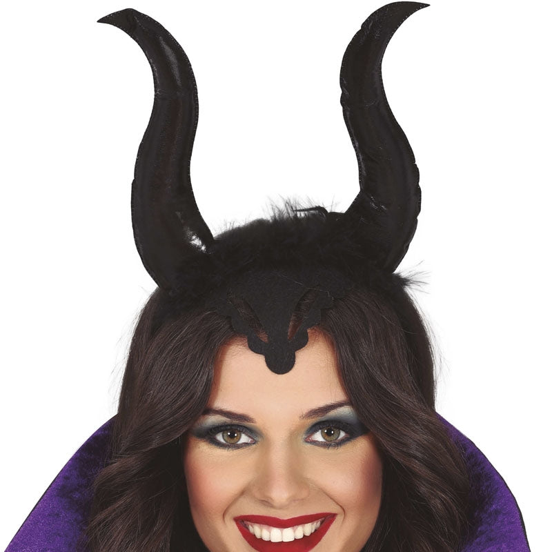 Fita para a cabeça com chifres da Maléfica para disfarçar-se em festas de horror e Halloween | a bandolete com chifres para se disfarçar de Maléfica é o toque original perfeito para completar a sua fantasia medonha de uma forma surpreendente e colorida em qualquer evento assustador de disfarces