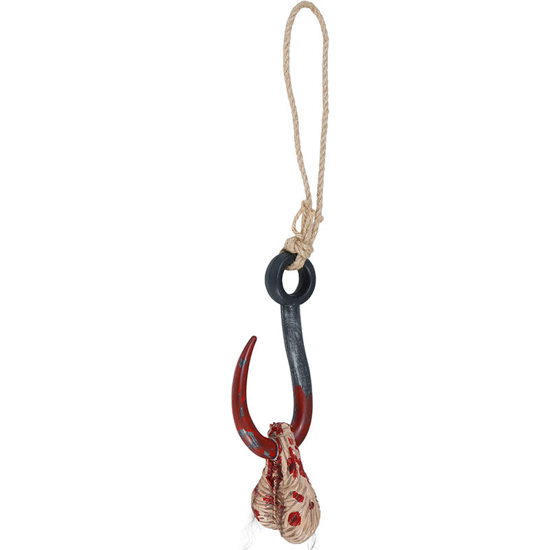 - Gancho ensanguentado com detalhe anatômico realista simulando testículos