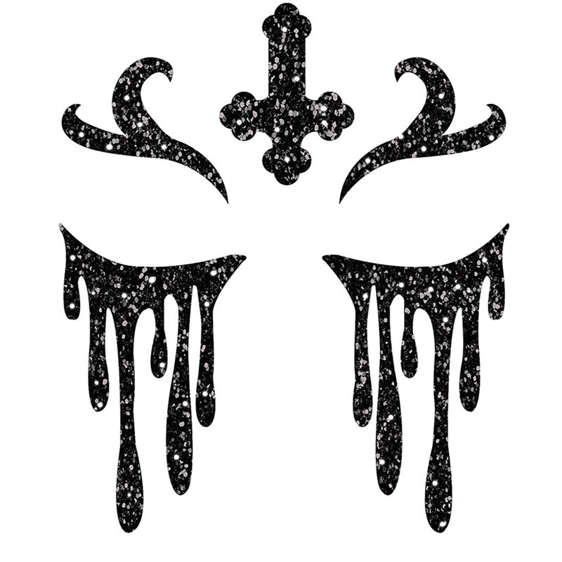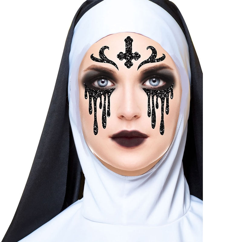 Glitter facial Freira do Diabo para disfarçar-se em festas de horror e Halloween e dar o toque original perfeito para completar a sua fantasia medonha de uma forma surpreendente e colorida em qualquer evento assustador de disfarces