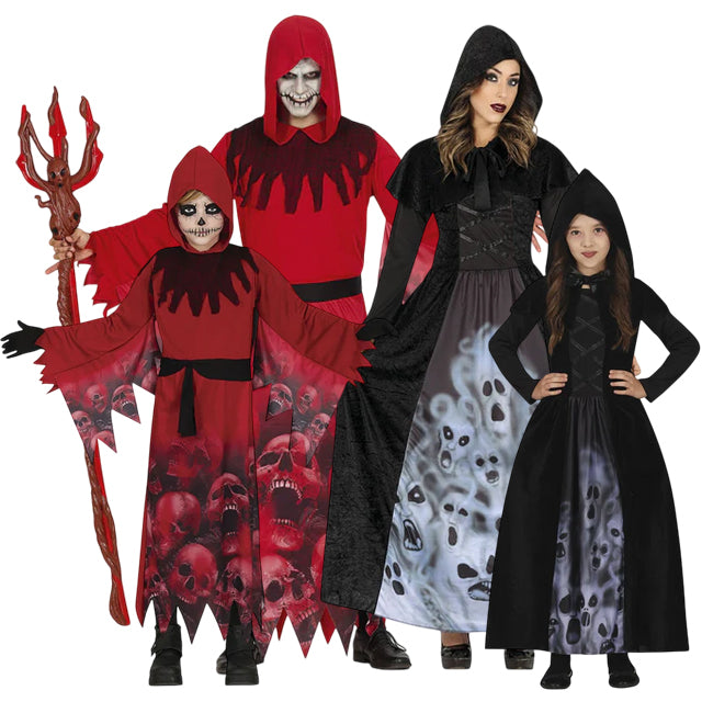 Ideia fantástica para disfarçar toda a família de Caçadores de Almas, com modelos a condizer para homem, mulher, menino e menina. Podes aceder ao conteúdo de cada disfarce mais abaixo na secção «Completa o teu look», onde aparece cada traje pertencente individualmente a este grupo.