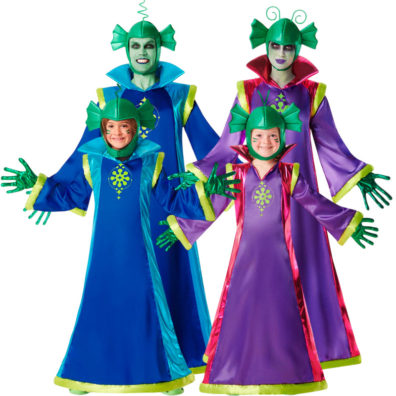 Uma ideia fantástica para disfarçar toda a família de Extraterrestres com desenhos a combinar para homens, mulheres, rapazes e raparigas. Pode aceder ao conteúdo de cada fato abaixo na secção ´Complete o seu look´, onde cada fato pertencente a este grupo é listado individualmente.