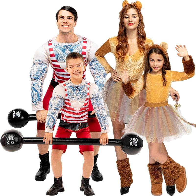 Uma ideia fantástica para disfarçar toda a família de Halterofilistas e leoas com desenhos a combinar para homens, mulheres, rapazes e raparigas. Pode aceder ao conteúdo de cada fato abaixo na secção ´Complete o seu look´, onde cada fato pertencente a este grupo é listado individualmente.