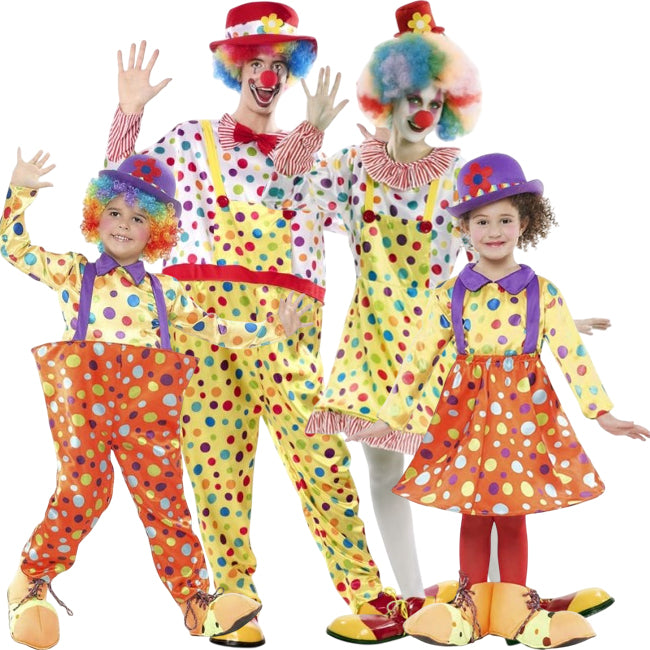 Ideia fantástica para disfarçar toda a tua família de Palhaços às Bolinhas, com modelos a condizer para homem, mulher, menino e menina.