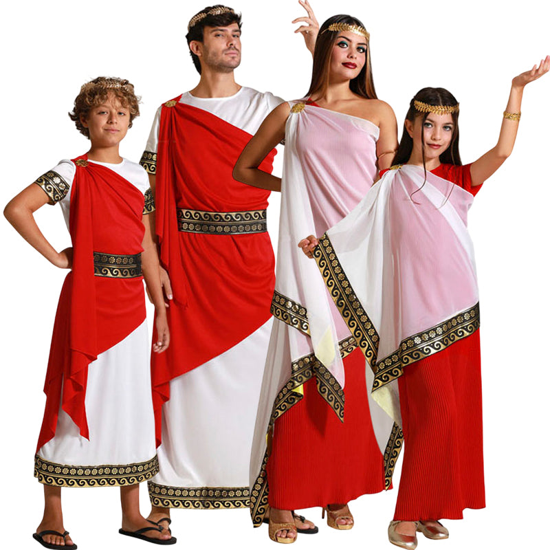 Ideia fantástica para disfarçar toda a tua família de Senadores Romanos, com modelos a condizer para homem, mulher, menino e menina. Podes aceder ao conteúdo de cada disfarce mais abaixo na secção «Completa o teu look», onde aparece cada traje pertencente individualmente a este grupo.