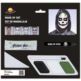Kit de maquilhagem de esqueleto negro para disfarçar-se em festas de horror e Halloween e dar o toque original perfeito para completar a sua fantasia medonha de uma forma surpreendente e colorida em qualquer evento assustador de disfarces