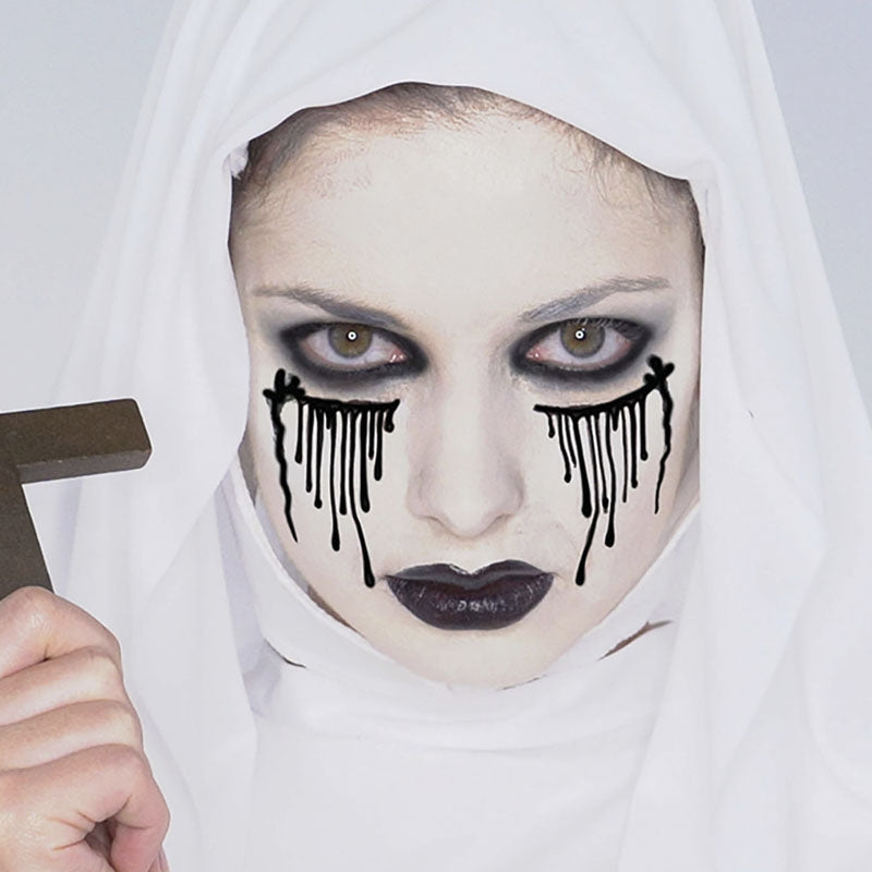 Kit de Maquilhagem Freira Diabólica para disfarçar-se em festas de horror e Halloween e dar o toque original perfeito para completar a sua fantasia medonha de uma forma surpreendente e colorida em qualquer evento assustador de disfarces