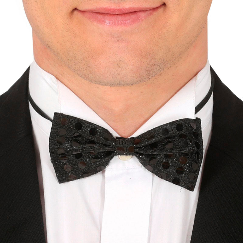 Laço com lantejoulas preto é o toque original perfeito para completar a sua fantasia de uma forma marcante e colorida em qualquer evento de fantasia, carnaval ou festa de fantasia