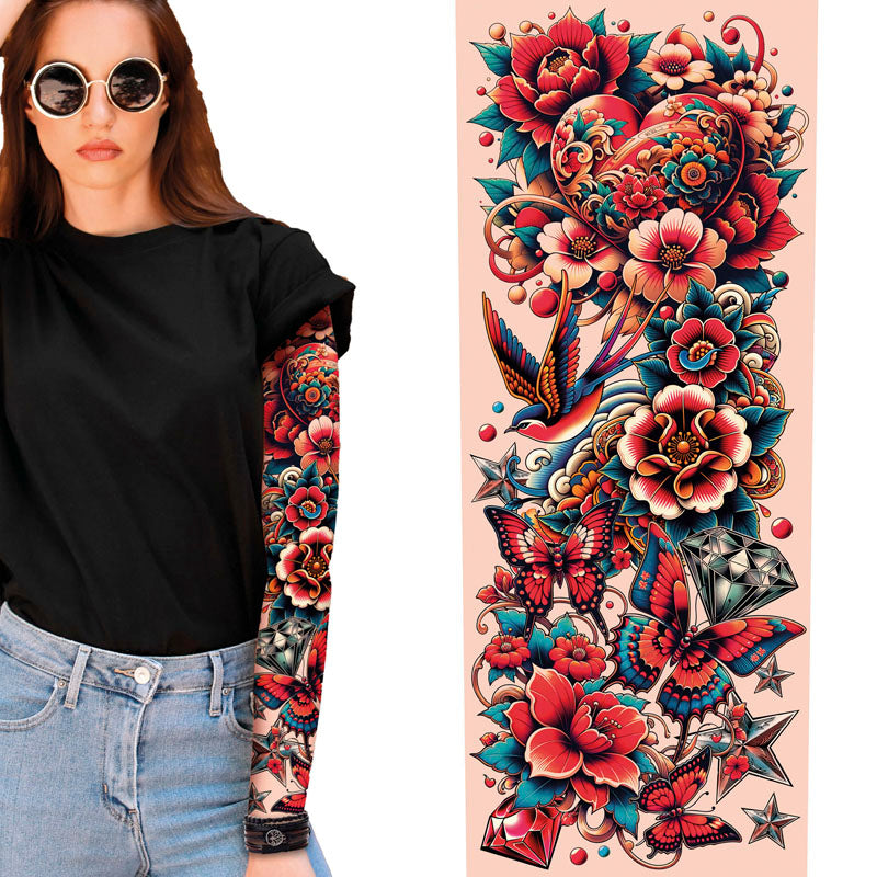 Manga tatuagem multicolor é o toque original perfeito para completar a sua fantasia de uma forma marcante e colorida em qualquer evento de fantasia, carnaval ou festa de fantasia